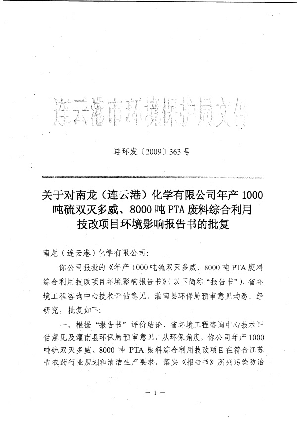 硫雙威環(huán)評批復p1