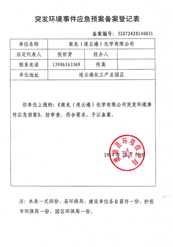 江陰南龍化學品有限公司 [原南龍(連云港)化學有限公司]