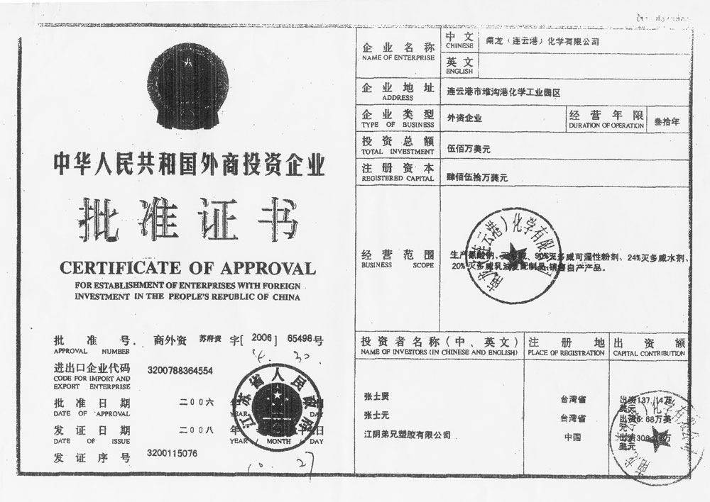 [Pesticide Registration Certificate]